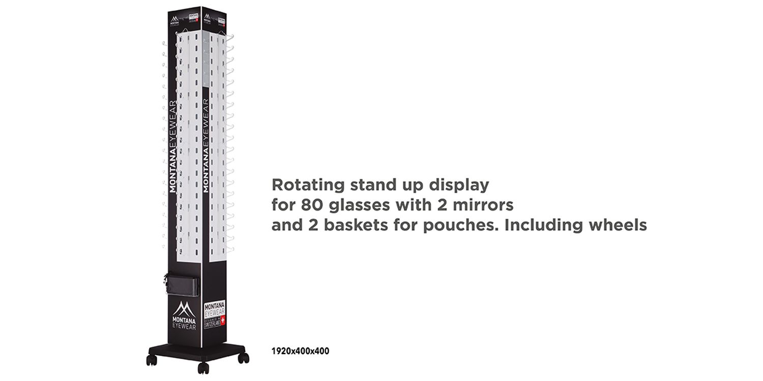 Espositore girevole verticale per 80 occhiali da lettura occhiali da sole o montature, con 2 specchi e 2 contenitori porta astucci
